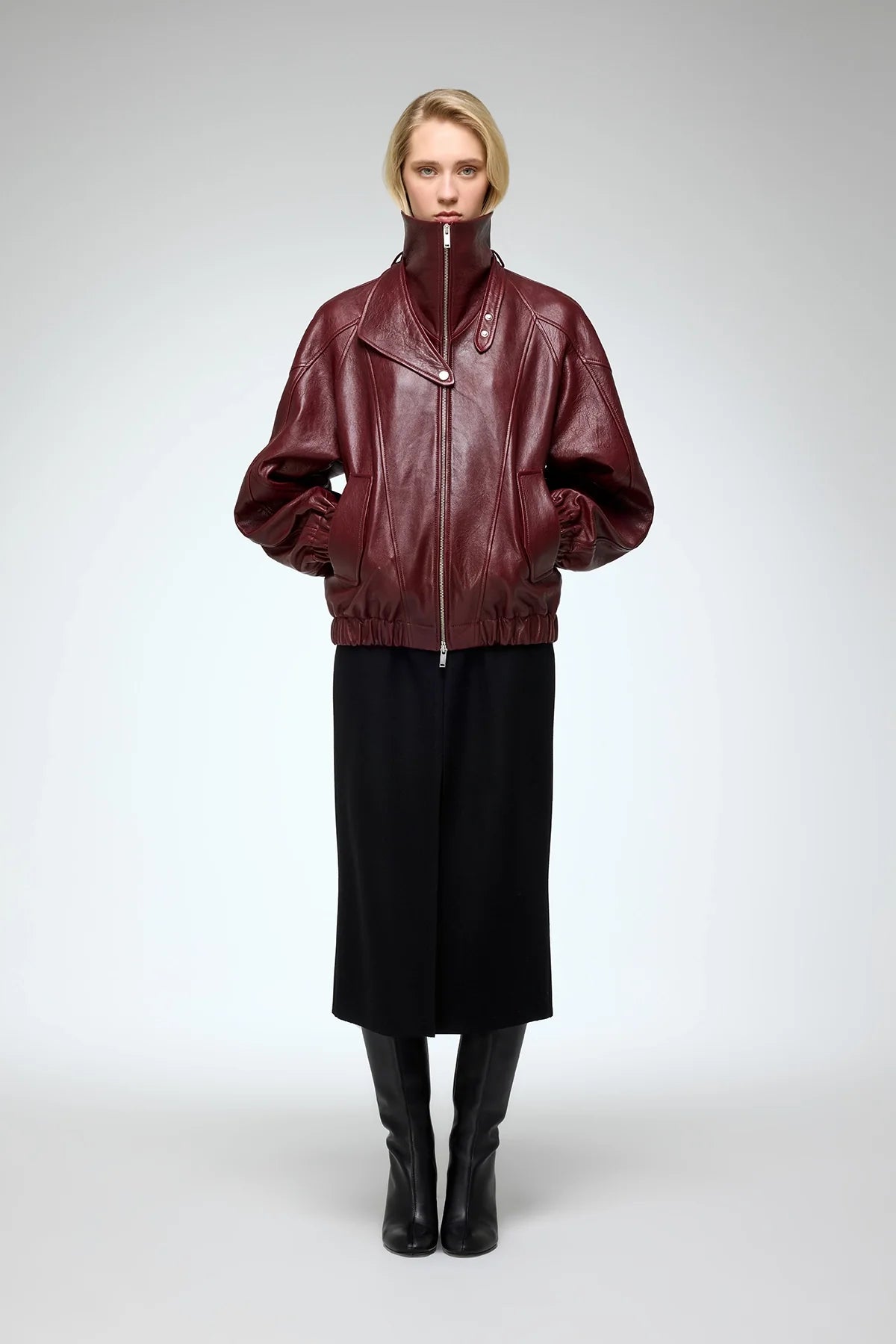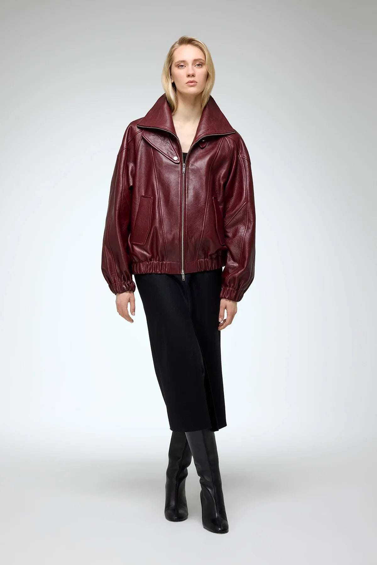 May Bordeauxfarbene Lederjacke
