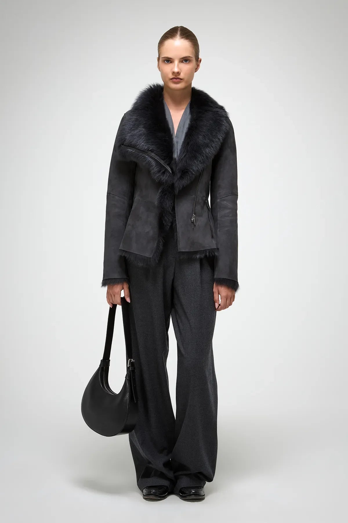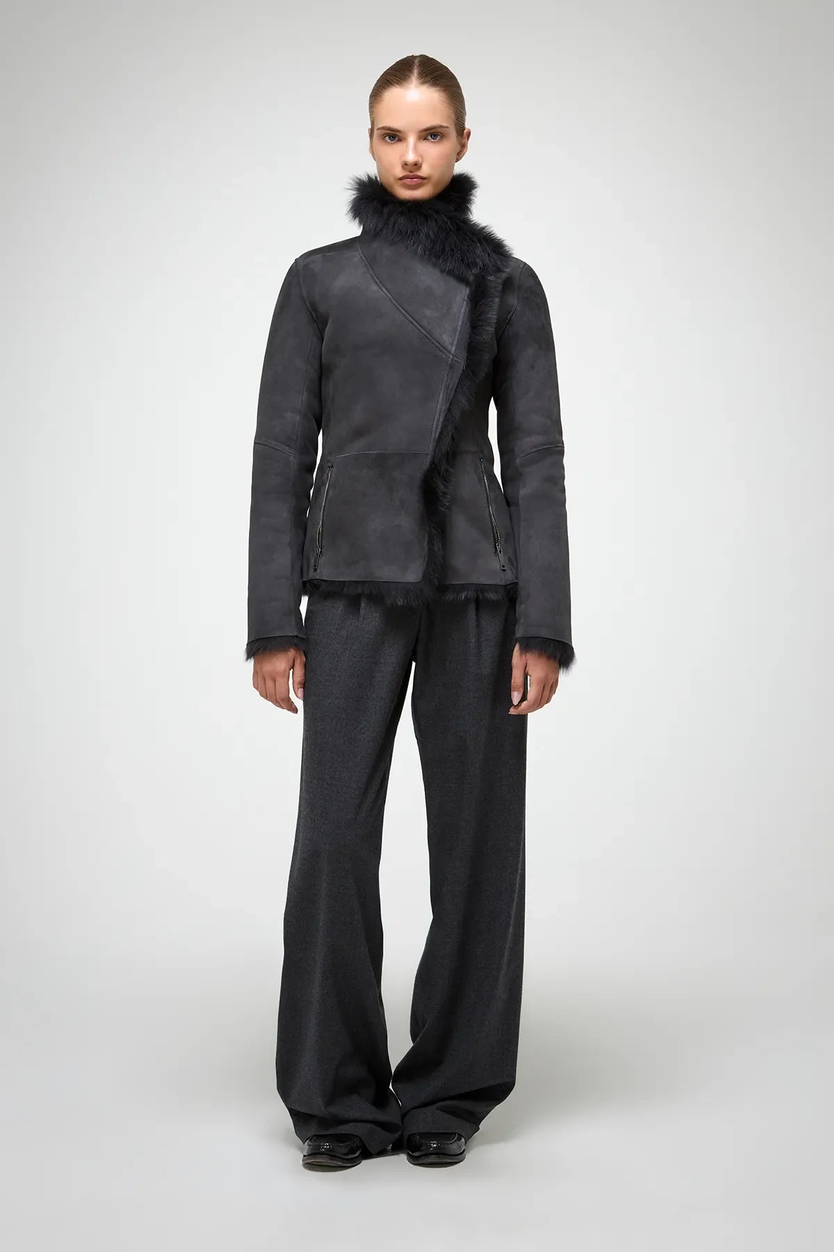 Adila Anthrazitfarbene Lammfelljacke