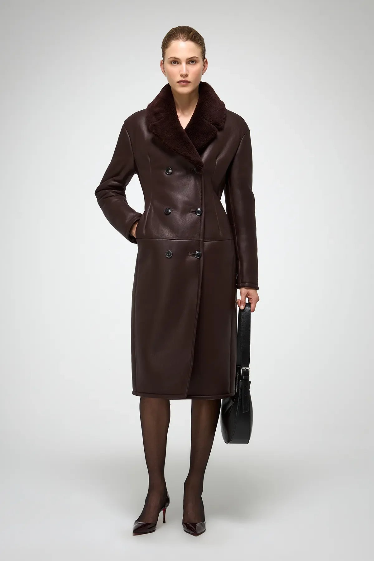 Celina – Kirschroter Lammfellmantel