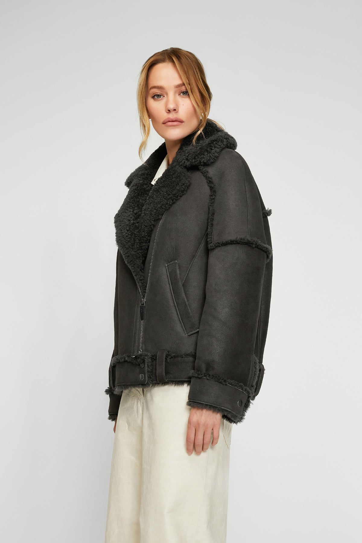 Anthrazitfarbene LammfellJacke
