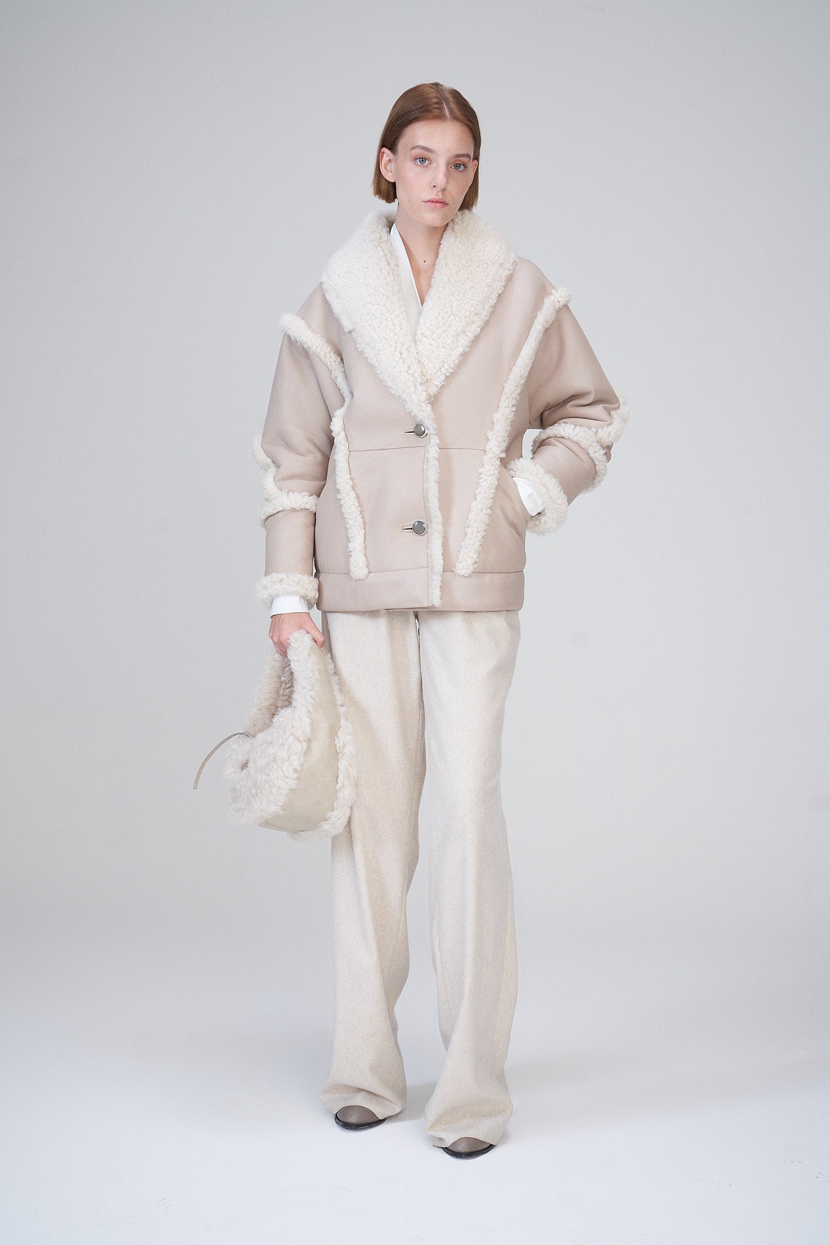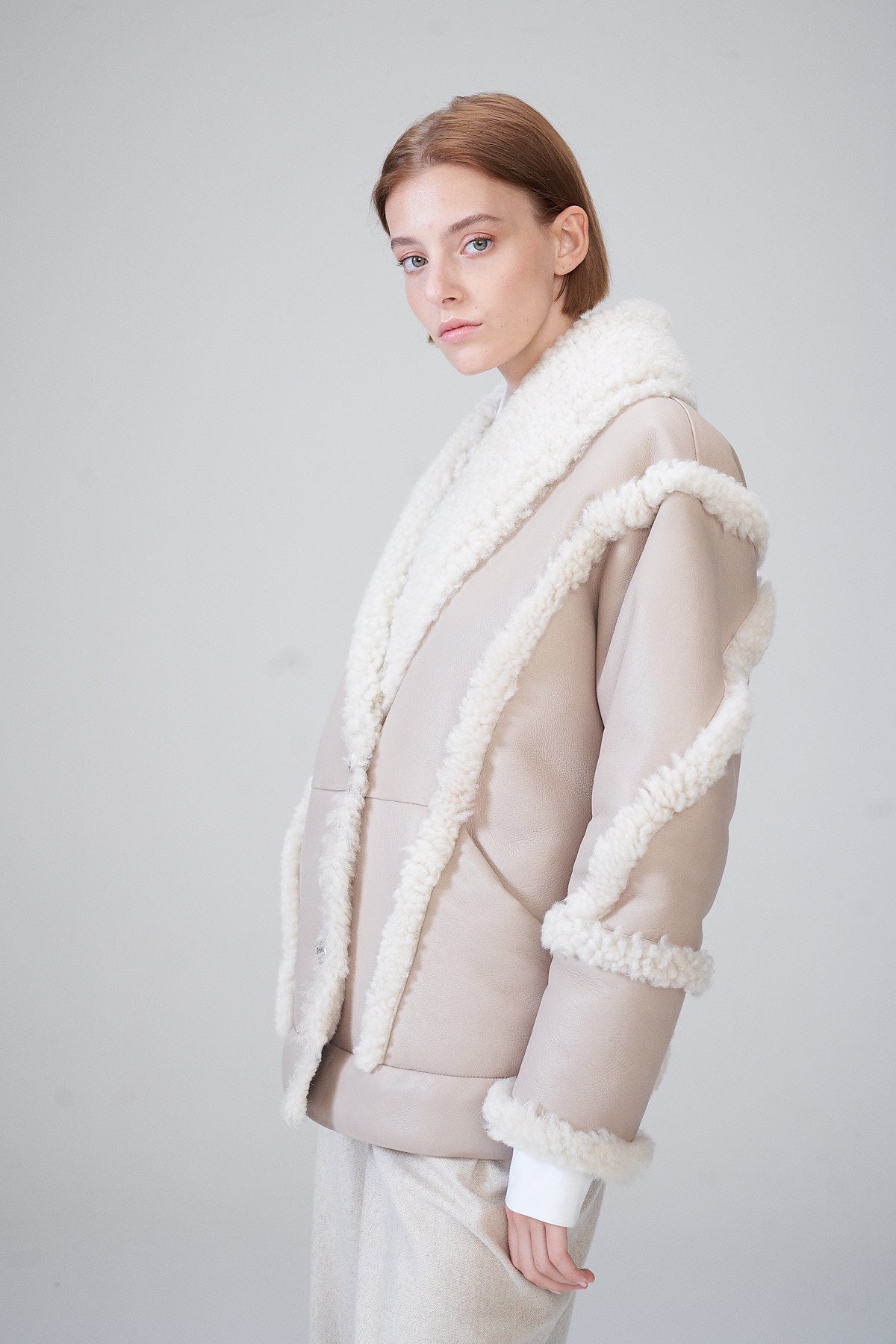 Laureen Beigefarbener LammfellMantell