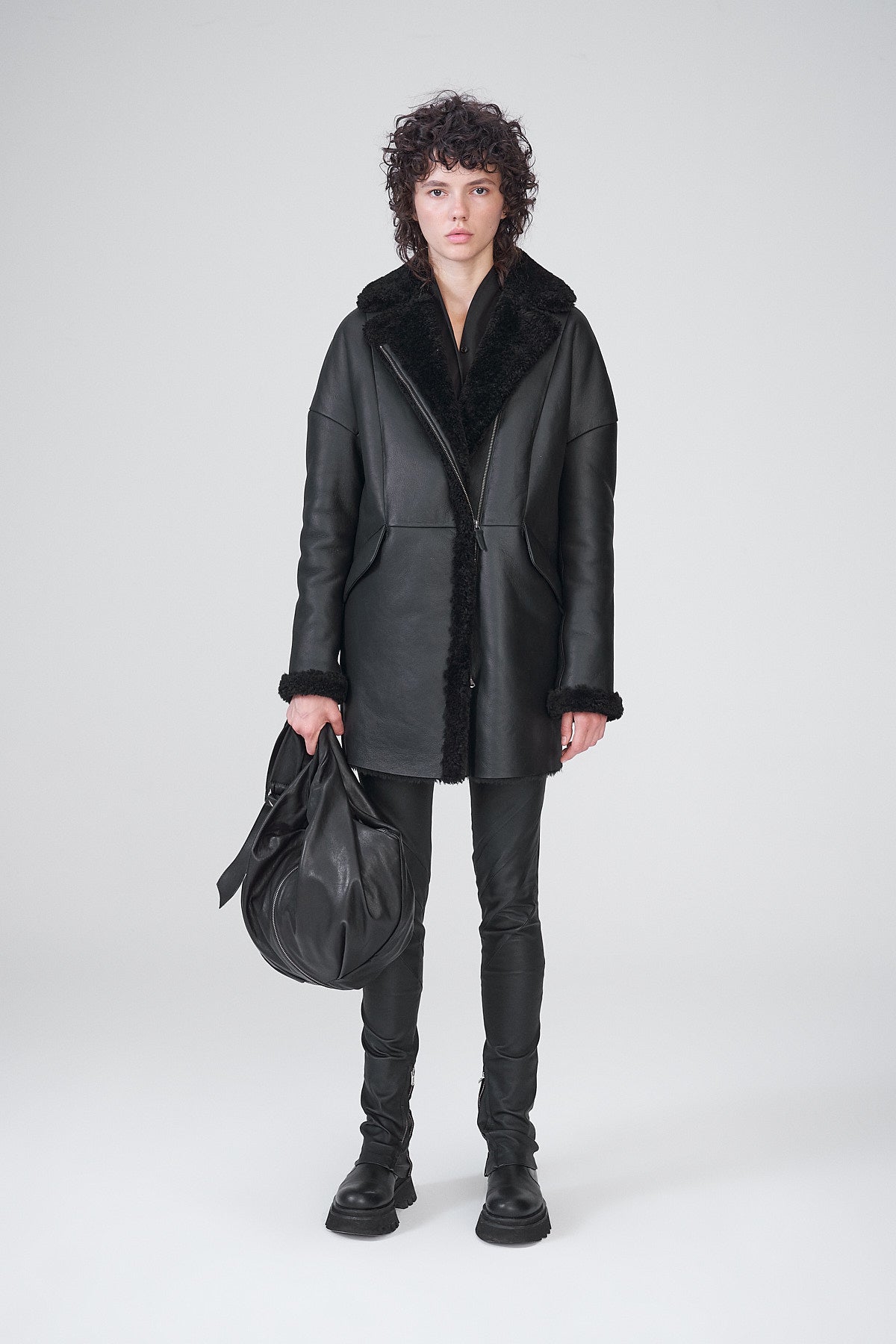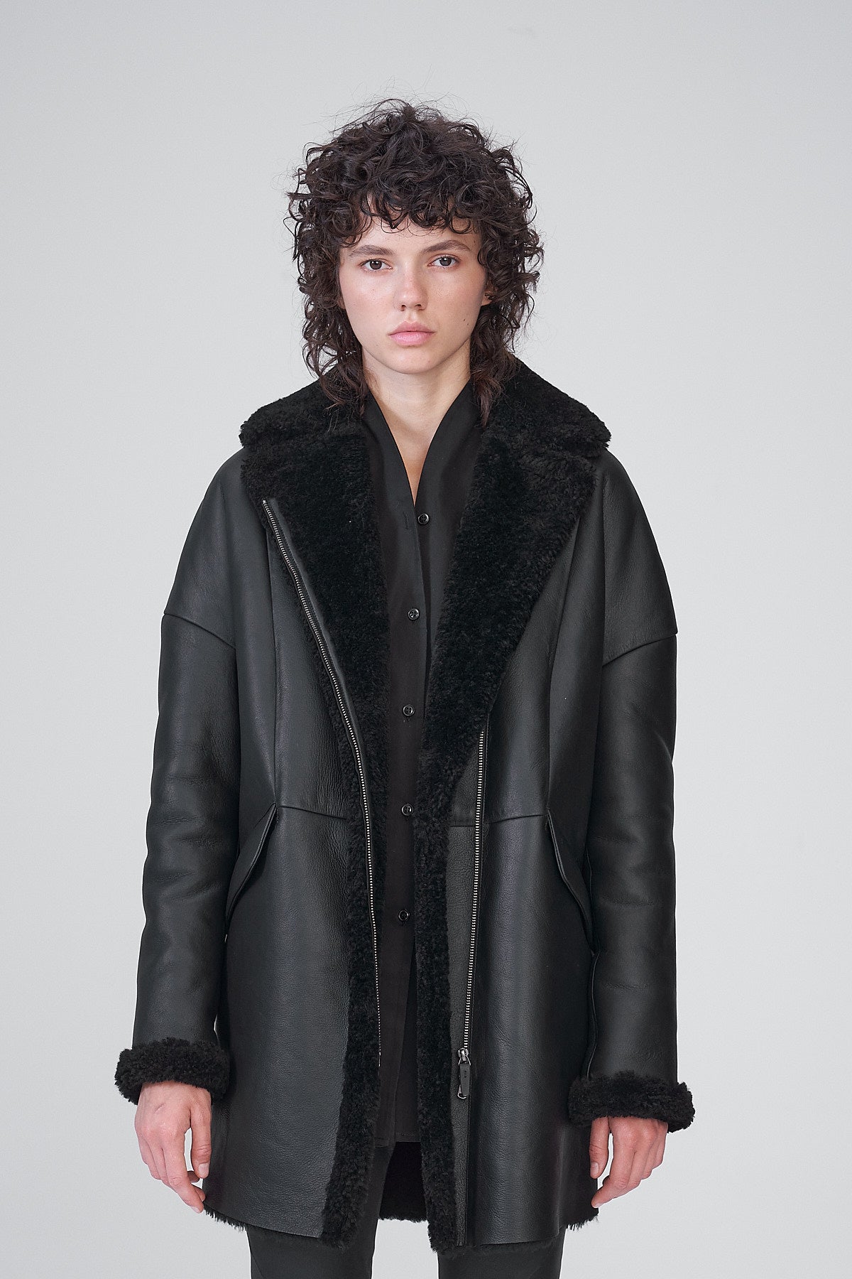 Schwarze LammfellMantel