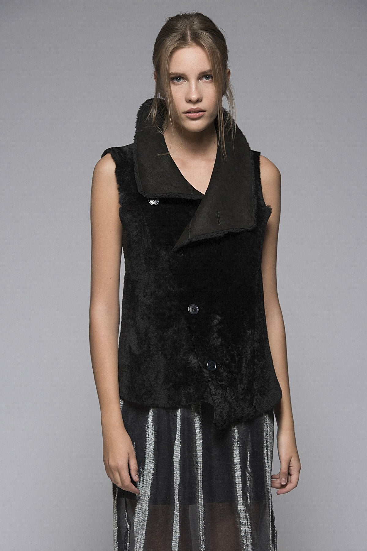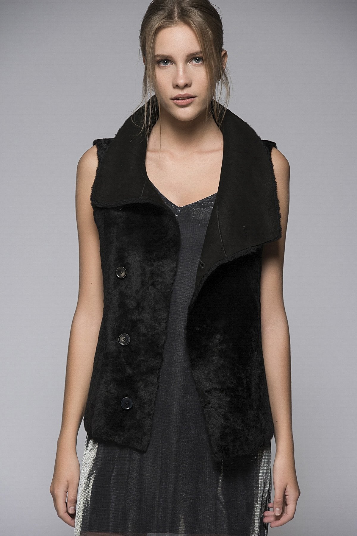 Schwarze Lammfellweste