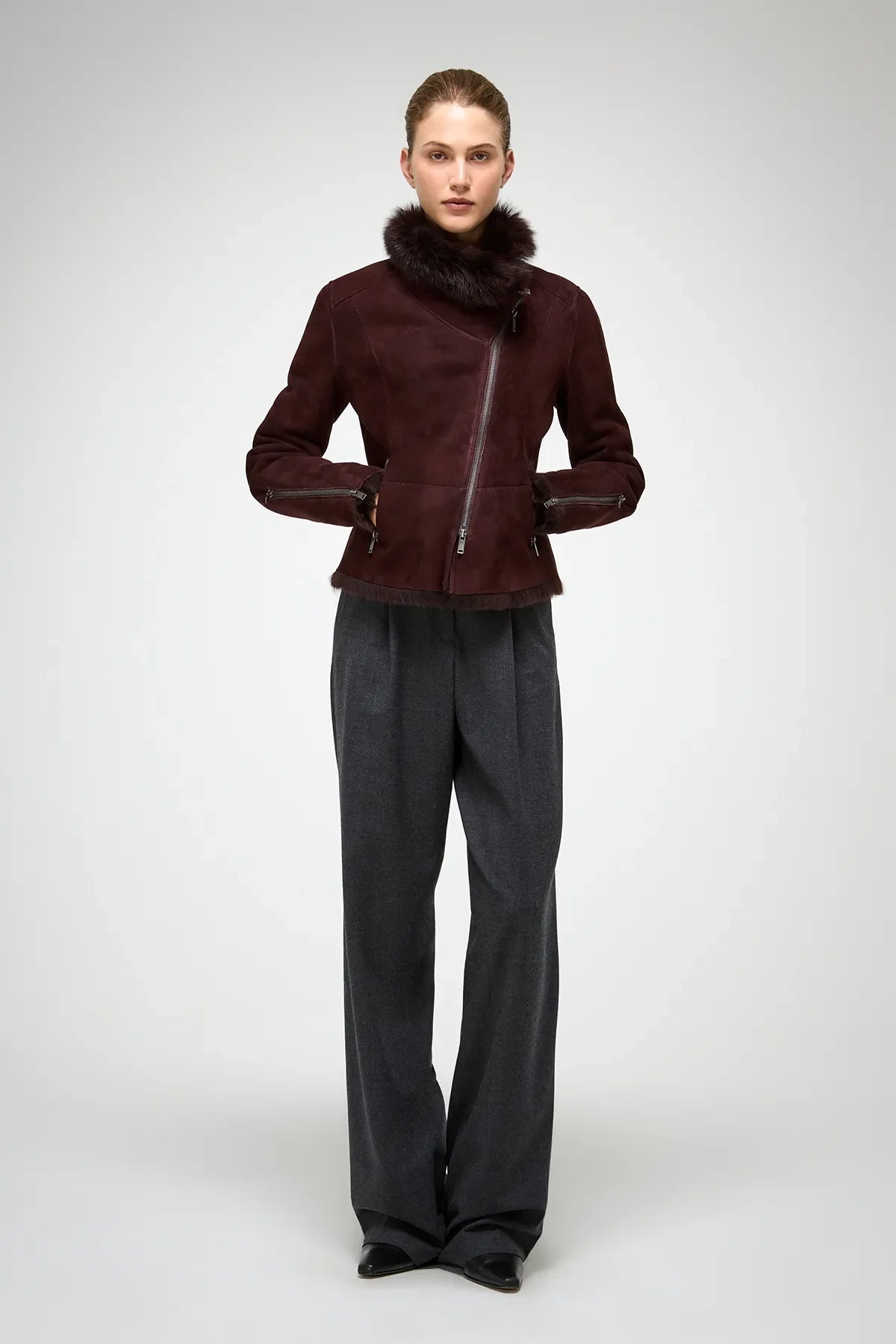 Renata – Kirschroter Lammfelljacke
