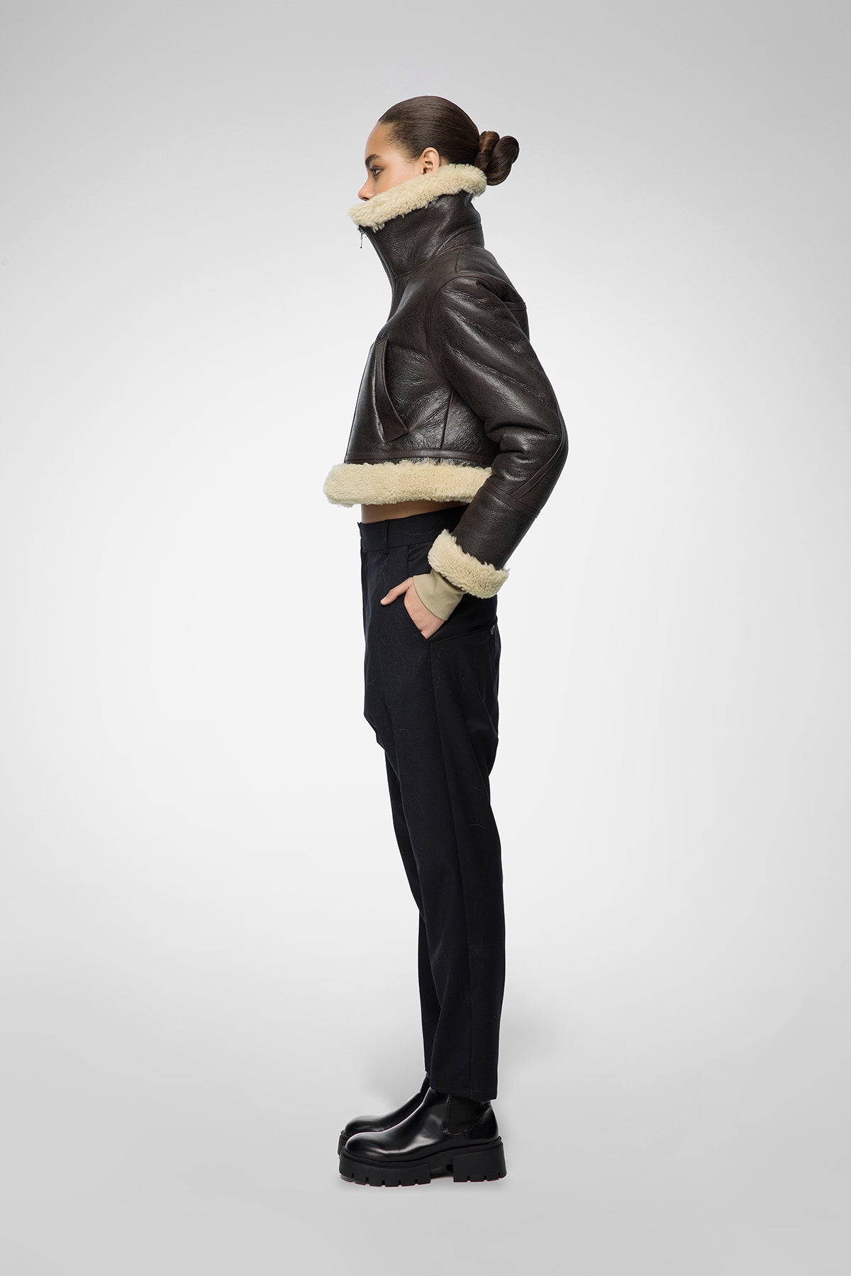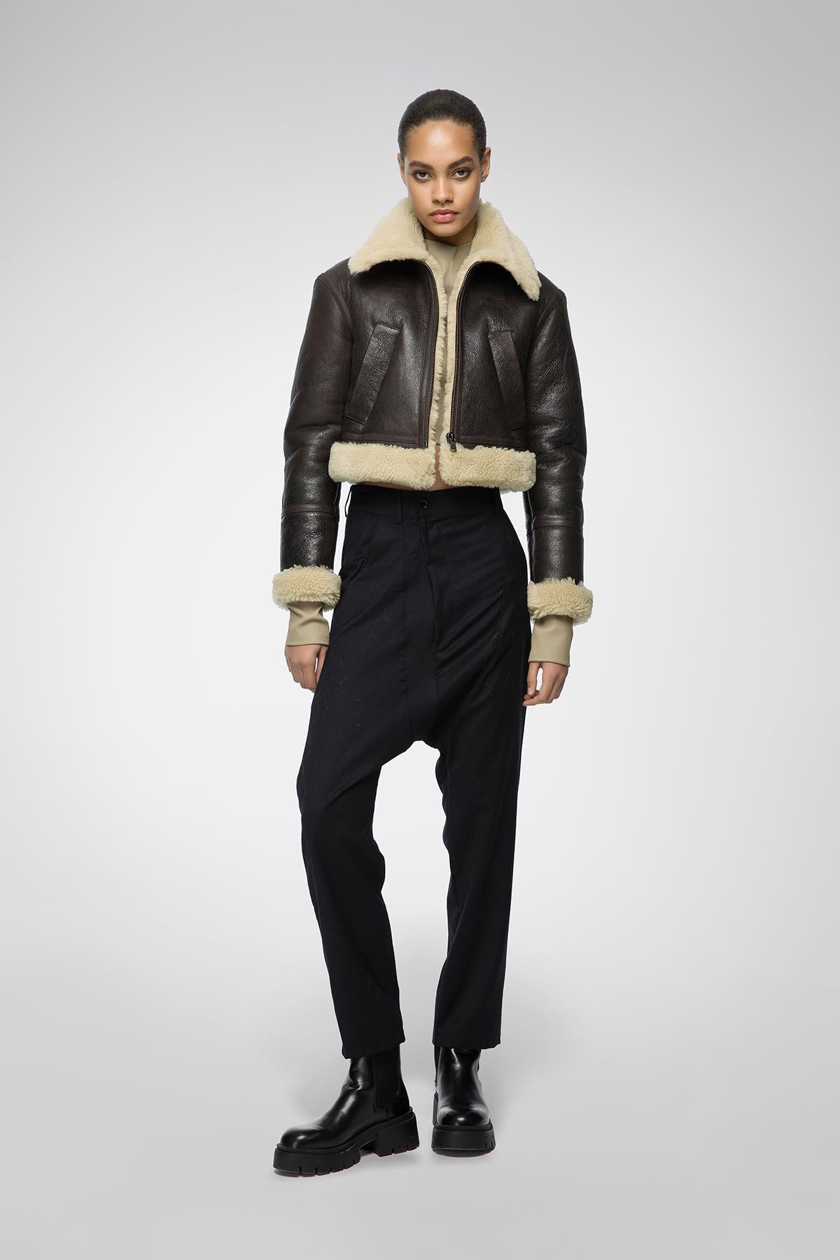 Yugen Braunbeige Lammfelljacke